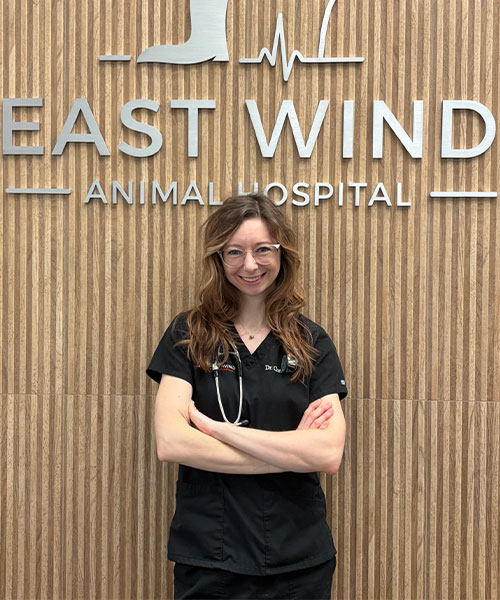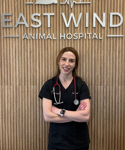 Dr. Stevko is the proud owner and veterinarian at East Wind Animal Hospital. Her love for animals started young—walking dogs at a local shelter at 14 and working as a veterinary assistant and groomer by 16—and it’s only grown since. She went on to study biomedical science at Marist College, contributed to a published research paper, and earned her veterinary degree from the University of Pennsylvania in 2018. Along the way, she also picked up a certification in veterinary business management, combining her love of animals with a knack for running a practice.
